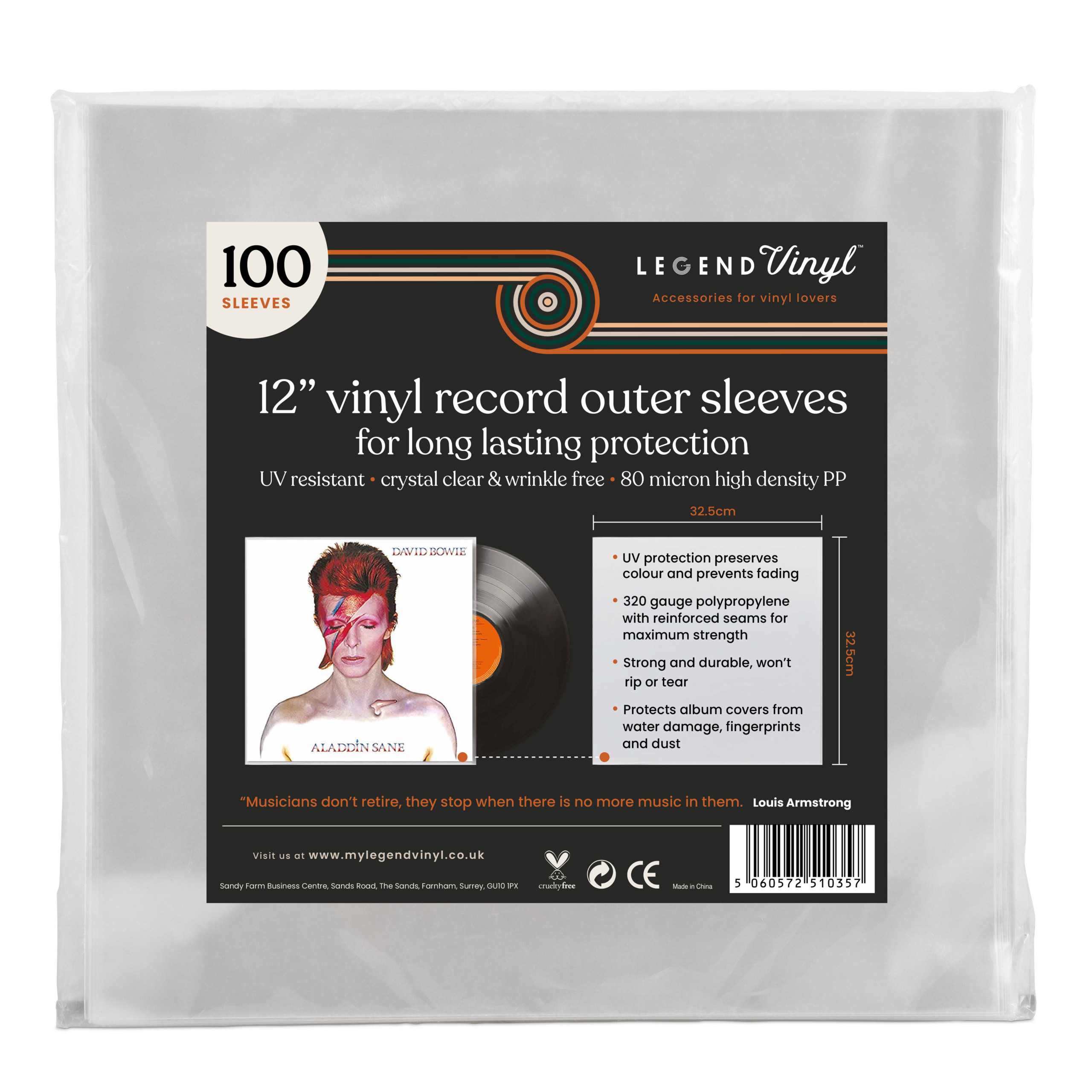 Our vinyl sleeves measure 32.5cm by 32.5cm and have a low density of 0.905 gcm3, making them the perfect size for 12โ vinyl records without being excessively large or too tight. They can comfortably fit both single and double gatefold LPs. This means you can slide LPs in and out with ease without the risk of damage, at the same time as retaining aesthetic value. The packs of 50 & 100 premium quality protective LP sleeves will keep your LP records in โday oneโ condition, making your collection something that will appreciate the longer you keep it.