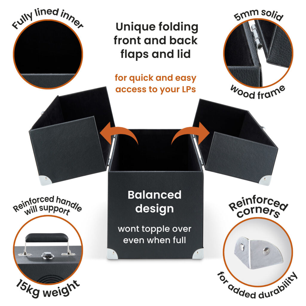 If you’re looking for a stylish and effective storage solution for your expanding record collection, look no further than the Legend Vinyl Storage case with fold-down front and back flaps. Browsing a large number of albums has never been simpler with this easy-access storage solution. Our LP case has been engineered to balance perfectly so it won’t topple over.