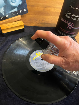 Apply 2–3 light sprays of cleaning fluid evenly across the surface of the record.