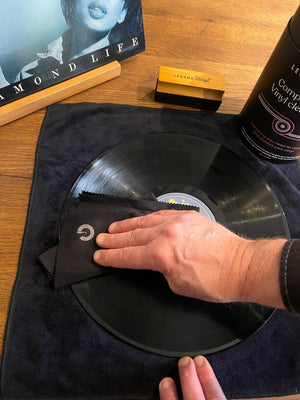Place your record on a clean, soft surface — ideally the included microfibre cloth — to protect it while cleaning.
